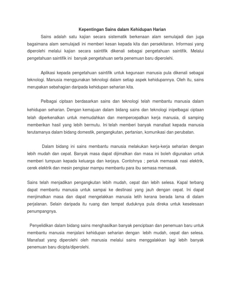 Kepentingan Sains Dalam Kehidupan Seharian from imgv2-2-f.scribdassets.com Banyak kolom komentar dalam postingan justru berisi ujaran kebencian dengan kalimat yang tidak terkontrol. Itulah pesanan yang telah menusuk ke dalam hati dan jiwa ini dari seorang individu yang berjaya. Dalam dunia yang semakin mencabar. Mengelakkan permusuhan antara agama atau kepercayaan penting untuk institusi politik khususnya dalam pilihanraya. Sains dan teknologi dilihat sebagai satu perkara yang prima dalam kehidupan manusia sejak memasuki abad ke 21. Kecanggihan teknologi tidak dipungkiri memang semakin memudahkan hidup manusia. Kepentingan sains dalam kehidupan harian. Teknologi informasi adalah istilah umum yang menjelaskan teknologi apa pun yang membantu manusia dalam membuat, mengubah, menyimpan, mengomunikasikan dan/atau menyebarkan informasi.